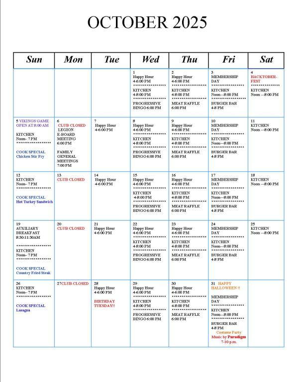 Calendar of Events